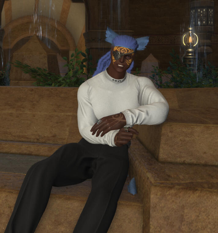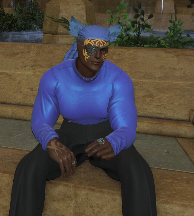 CompanionA Mi'qote with a voice that is like chocolate for your ears. He burst on the scene in Ul'dah, where the desert climate was more suited to his liking. While he makes that his home, he doesn't let it stop him from traveling the world and looking for new sites and experiences. His warm and friendly demeanor naturally puts people at ease making him one of the most approachable people you will ever meet.