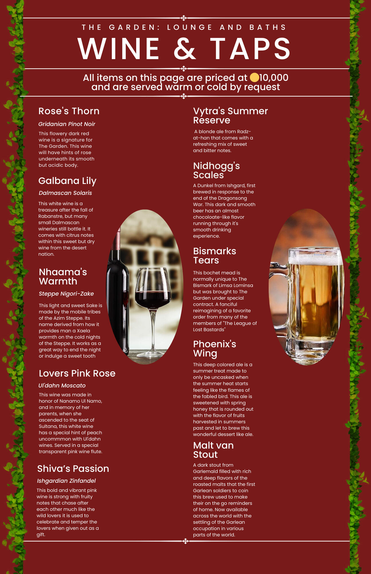 A lush, secluded oasis hidden within Ul'dah’s desert, The Garden is a place where beauty and business intertwine. Known for its breathtaking greenery, serene fountains, and aromatic blooms, The Garden serves as a home for cast aways, exiles, oddities and the broken. On the surface, it operates as a peaceful haven, a lounge and bathhouse that is willing to offer rare herbs, alchemical solutions and (with enough gil) fine company, attracting wealthy patrons, merchants, and adventurers alike.But beneath the idyllic exterior, darker dealings thrive. Dabbling in work such as the creation, trading, and smuggling of illegal goods, covert mercenary work and underground gambling, The Garden is a place where boundaries blur. Its members navigate both sides of the law, offering protection, information, and services to outsiders who seek them—whether they come with honest coin or under-the-table arrangements.Discretion is paramount, and trust is earned. The Garden is both a legitimate business and a secretive syndicate, where every transaction, legal or otherwise, contributes to the delicate balance between power and profit. It’s a sanctuary for all who need one, regardless of where they came from, but its a fruitful oasis to those with the ambition, skill and willingness to walk the fine line between order and chaos.